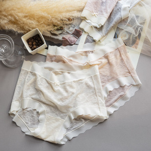 Beauty house underwear ladies ice silk lace pattern seamless plus size briefs girls pant top mid-waist breathable shorts