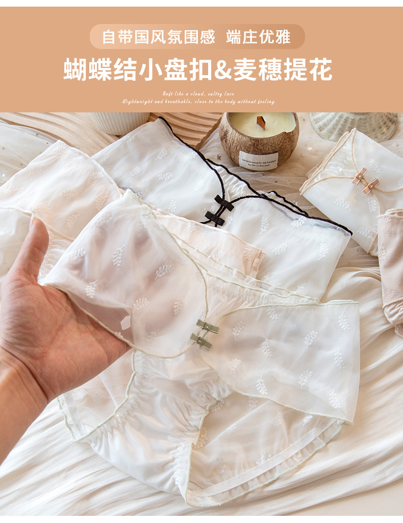 American House Underwear Ladies Chinese Style Ice Silk Lace Briefs Sexy Royal Sister Pure Wind Girl Pants New Style