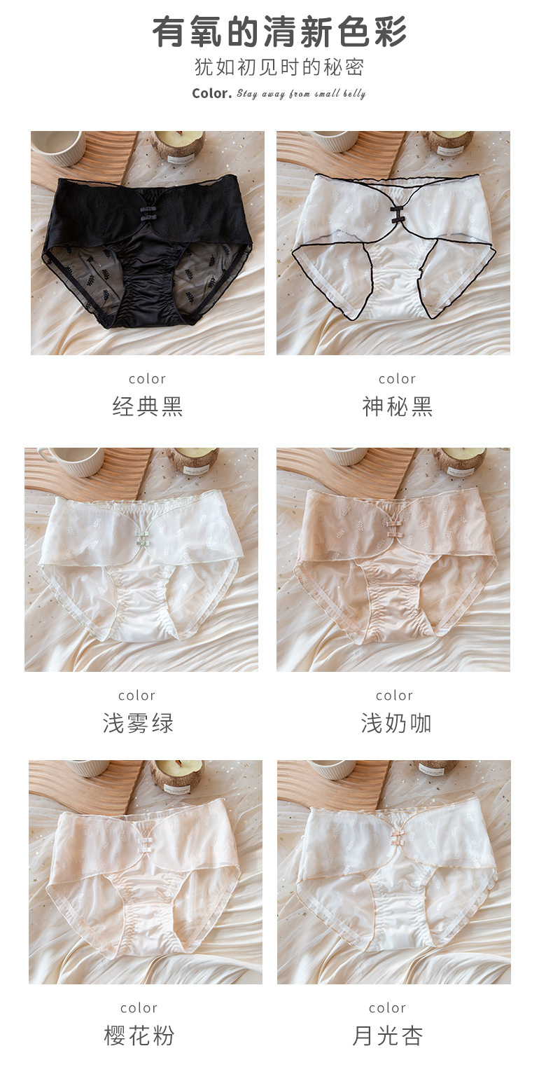 Beauty house underwear ladies high waist belly lift hip 7A pure cotton anti-bacterial crotch seamless ice silk satin lace briefs